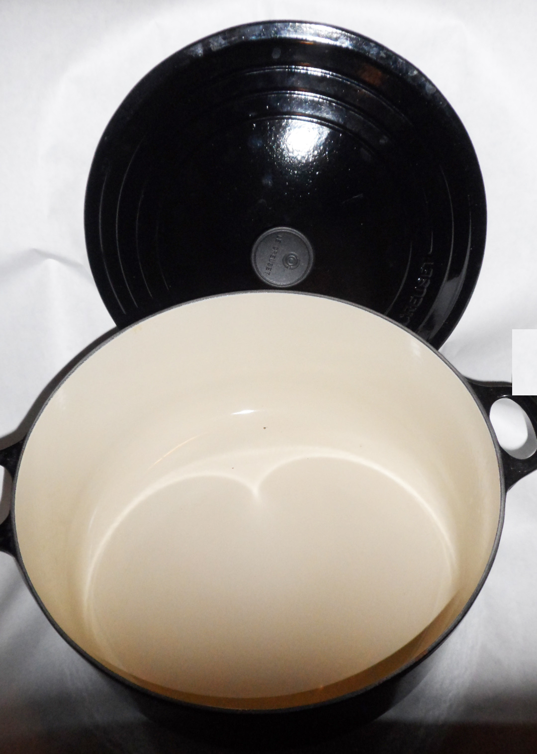 STACKING/STORING COOKWARE: Like many Le Creuset collectors, you may not have enough space to set out your pots and pans individually and need to stack the lids on top of the pots then stack pots inside of each other. If you bought new cookware but did not keep the black plastic stand-offs that were included or if you are collecting used pieces, here are a few inexpensive tips for stacking them that will help you avoid the scratches and wear spots so commonly seen on stacked enamel coated cast iron cookware.