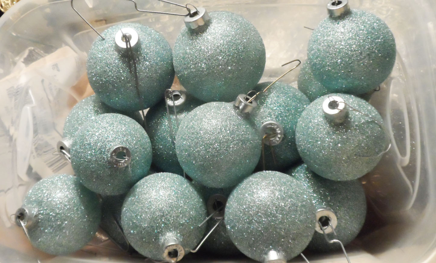 - Set of older ornaments. If you prefer glass, select those with cracked, faded or mottled paint.