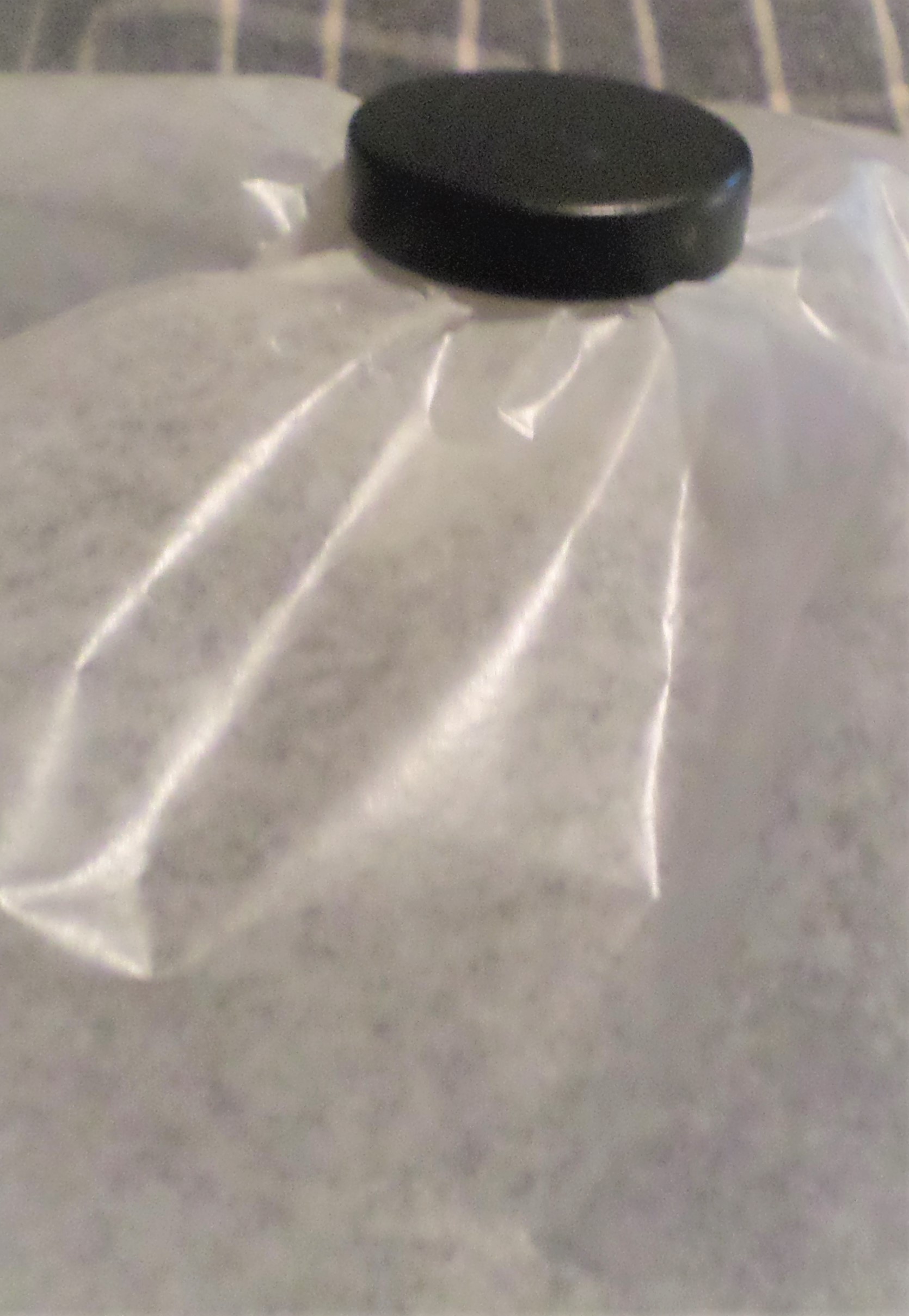 I covered the top of the jar with a piece of waxed paper and screwed the lid back on. Voila! The jar is protected from over spray, the lid will be fully exposed so that you can access most surfaces of it without difficulty plus, it holds the wax paper in place. This method would probably also work with plastic wrap but it will not shield your hand. Afterward, you can stand them up, side by side, in a large flat box lid to spray paint the top and all sides or hold the jar in your hand and paint each one individually. Make sure that the hand holding the jar is covered. Wear latex or plastic gloves and keep your hand under the waxed paper on the jar. If you repaint in a color different from the original, you might need to paint in two steps: one for the top and sides and one for the underside edges of the lid where it meets the jar. Do not paint inside the lid.