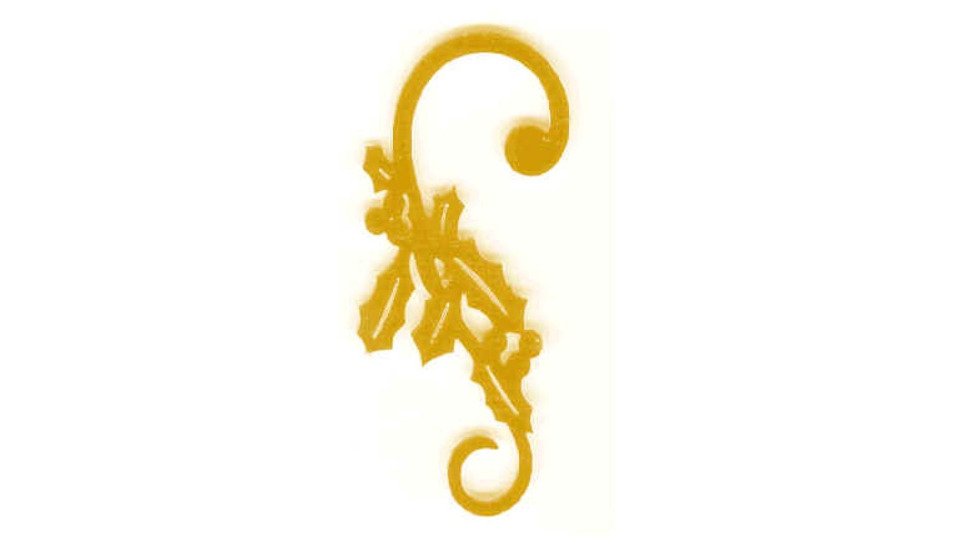 - 2" flat 23KG plated gold Holly ornament hooks: For ornaments up to 2 oz