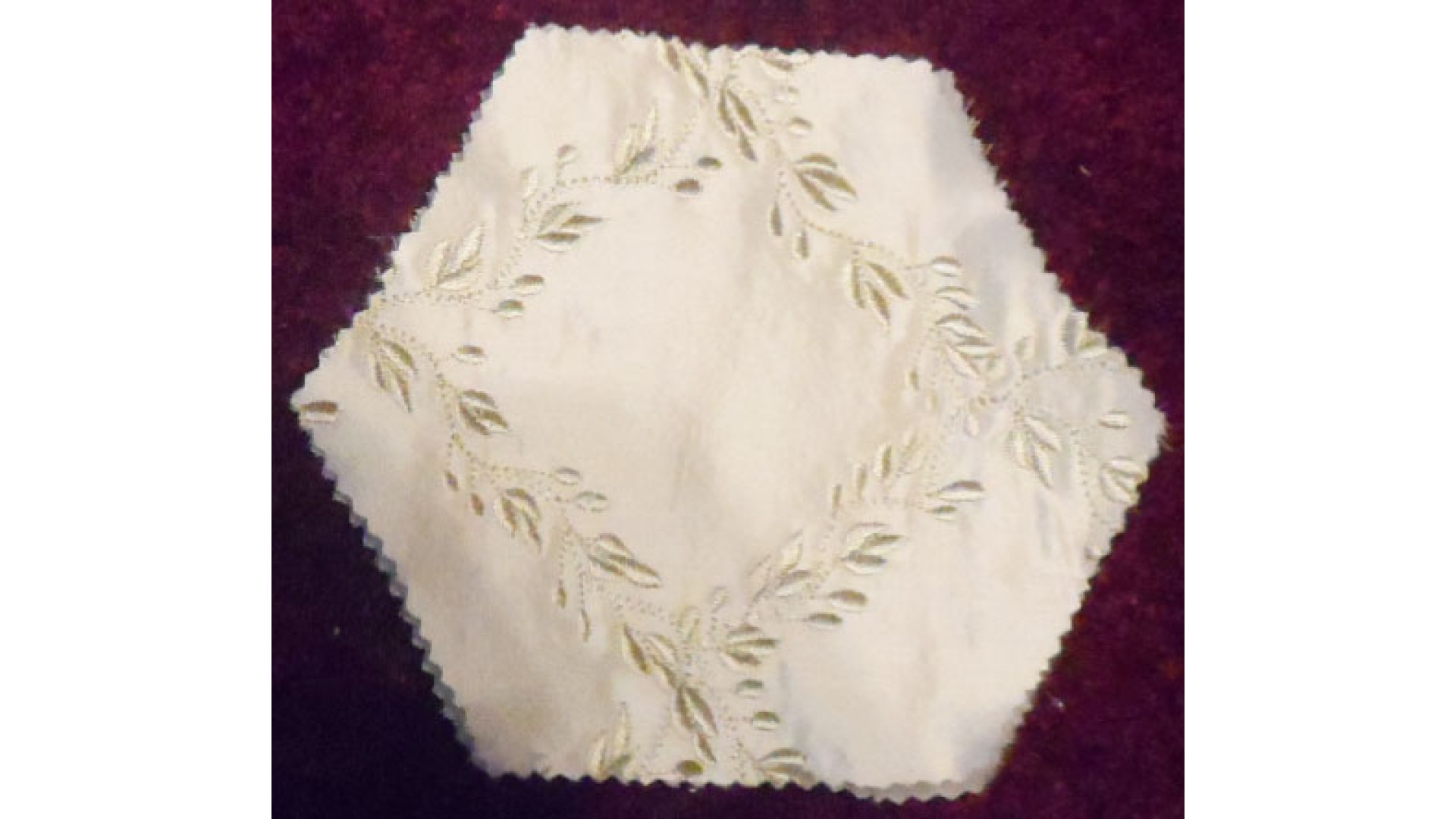 - The reverse of the fabric is a white cotton/polyester blend fabric embroidered the same as the front.