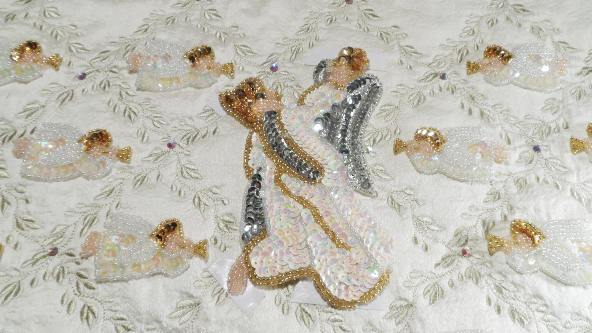 Angel and Miniature Angels on a Silk Christmas Tree Skirt