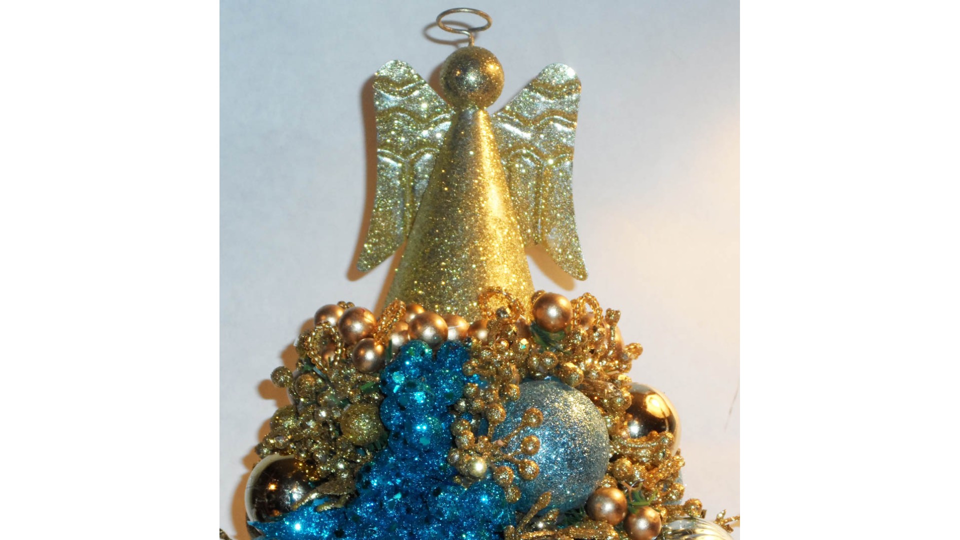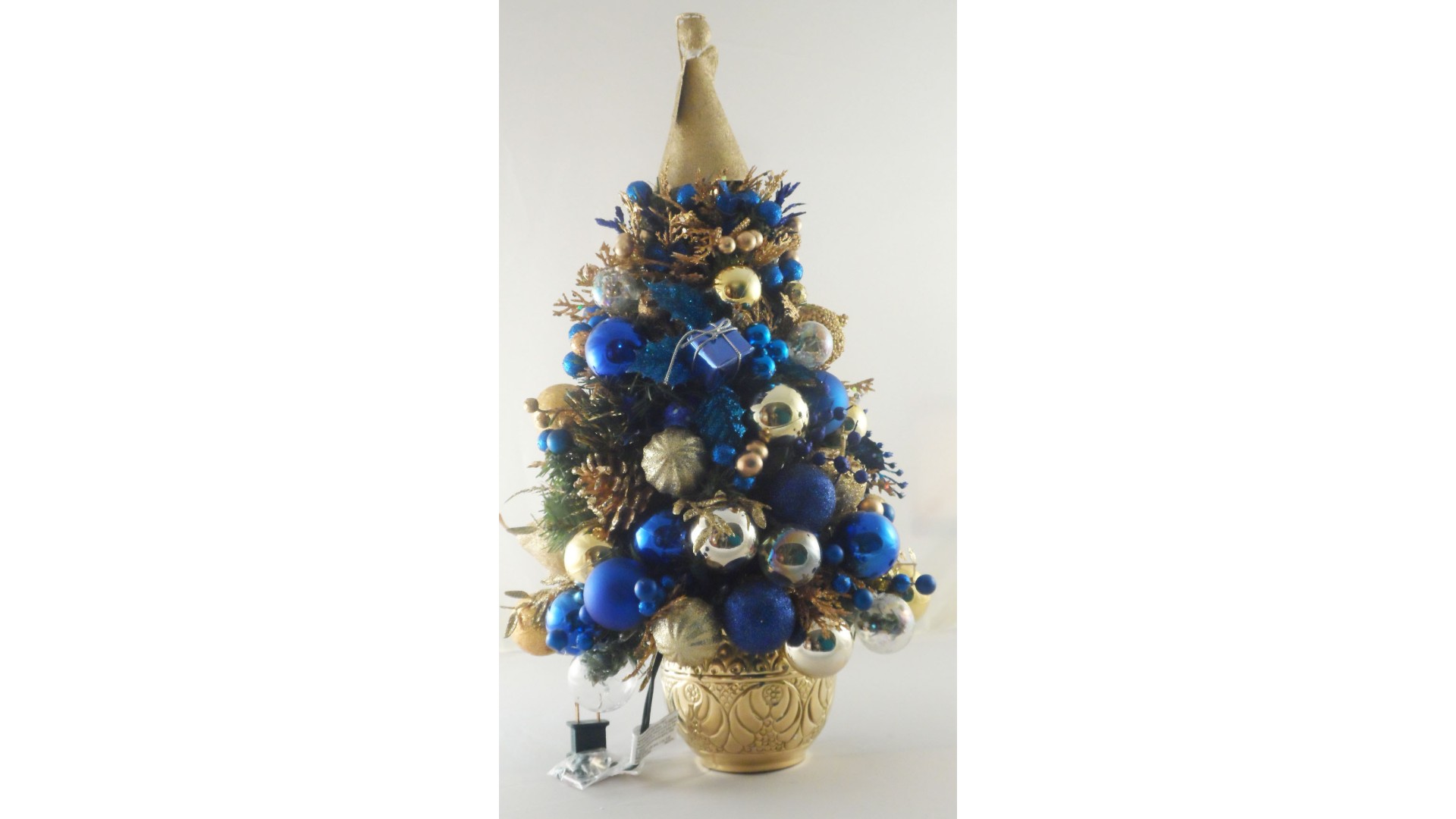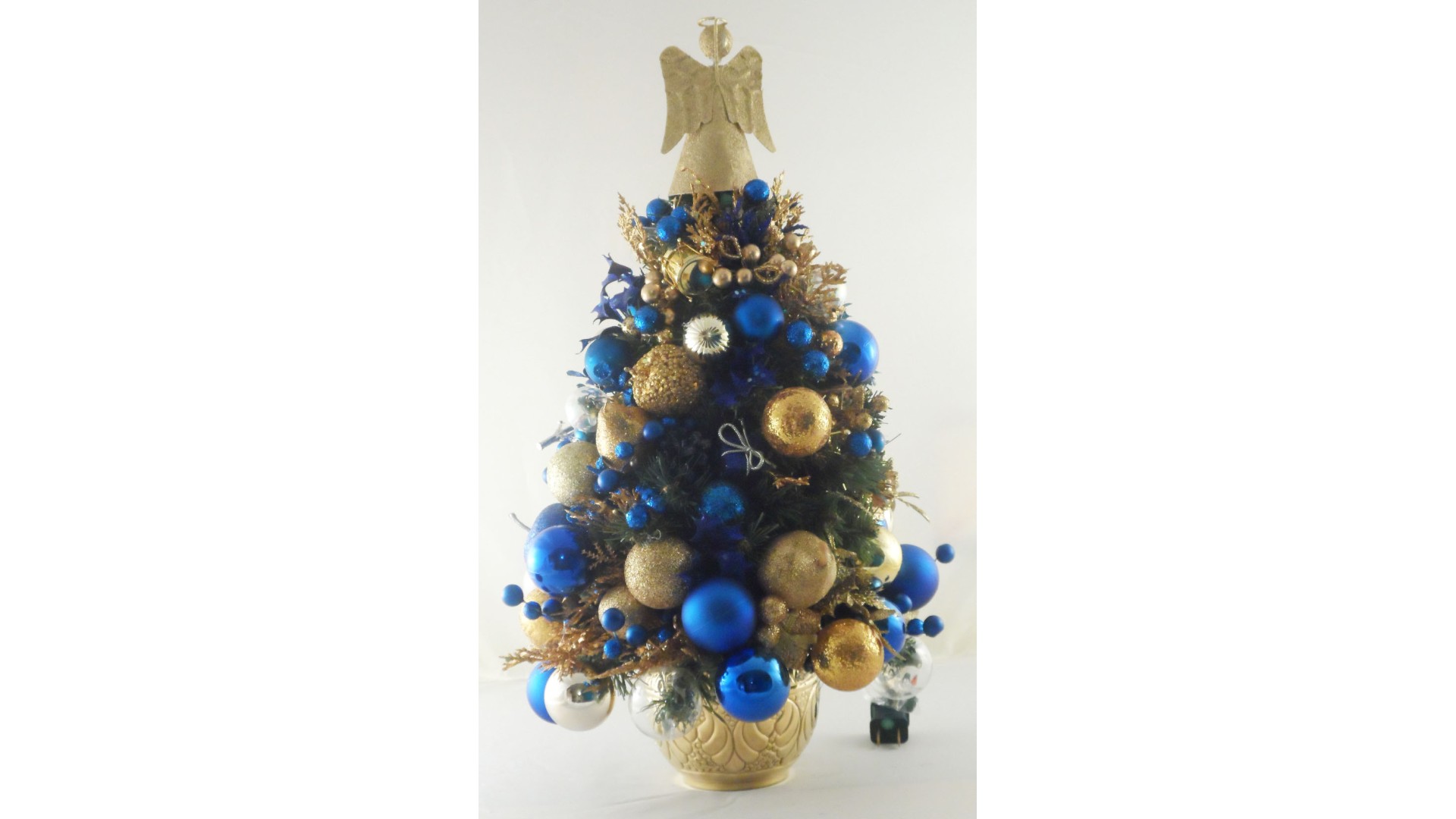 Just having this elegant royal blue and gold tabletop Christmas tree will bring holiday cheer into your apartment, home or office. Ann Laurie, the designer, is an avid craftswoman who creates gorgeous, custom made, hand decorated tabletop artificial Christmas trees. (Hint... This particular color combination of appeals to men! :-) Her elegant trees photograph a little "busy" because she is generous in the application of decorations. Yet, they are tastefully done. A lot of love goes into each tabletop Christmas tree.